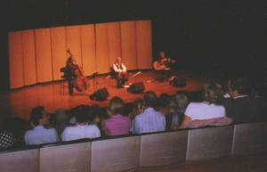 At back stage, from left to right: Prof. J. R. Monroy, Chairman, LACCS-UK, Therese Vassily-Saba, representing the English Magazine, CLASSICAL GUITAR, and virtuoso SANTE TURSI. |